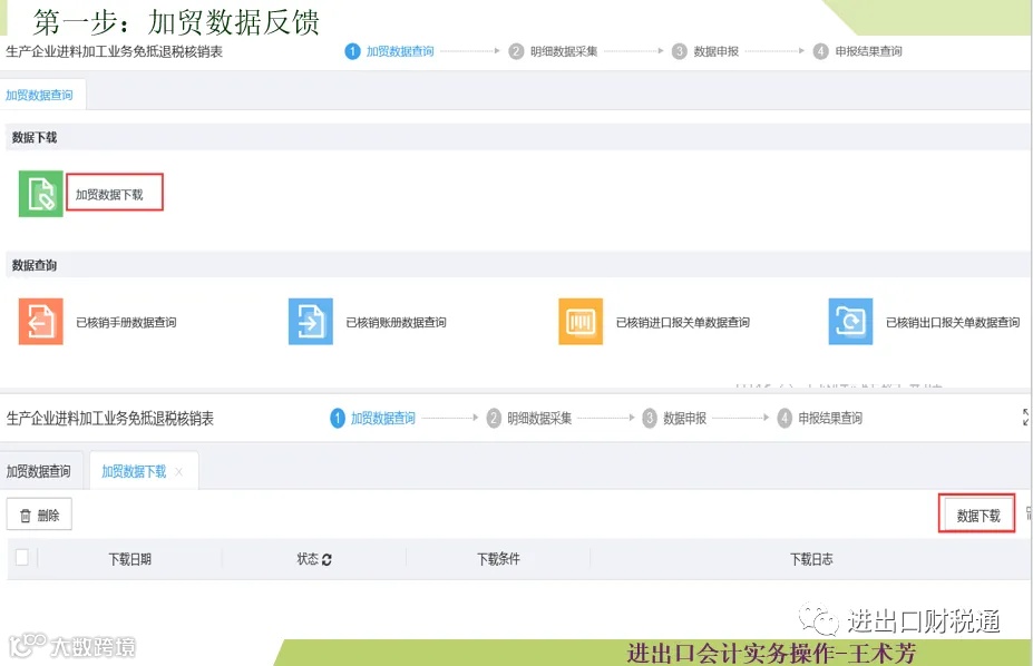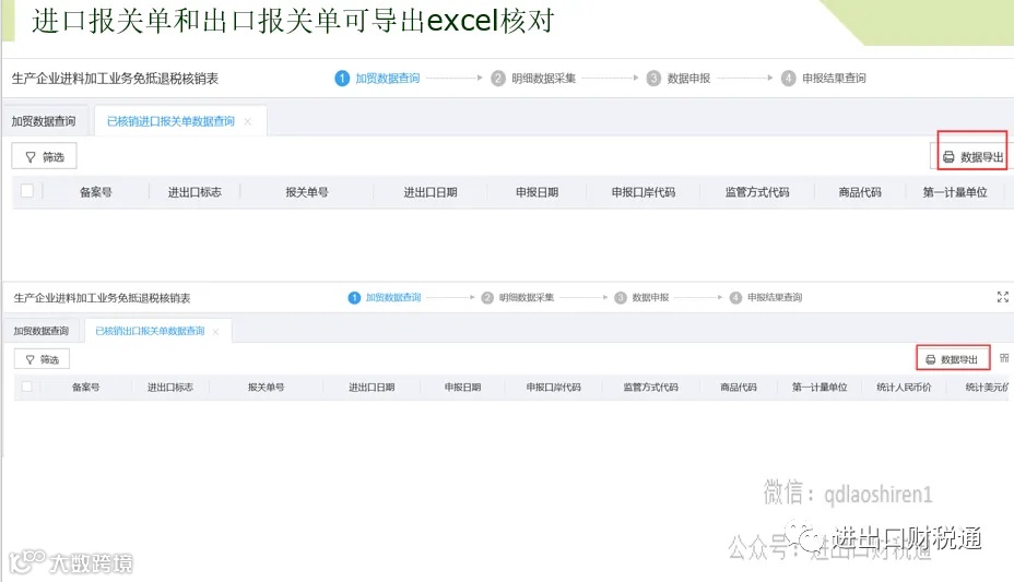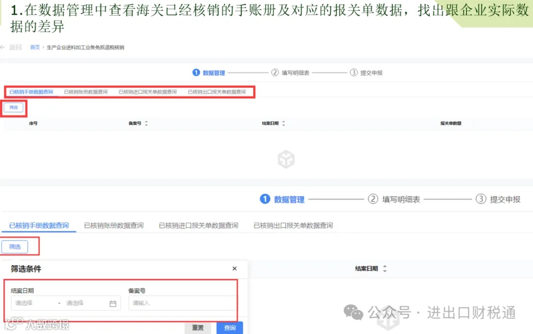 1.企业先获取加贸数据反馈读入系统(电子税务局在线版取消反馈下载),然后与需要核销的手(账)册对应的进口报关单和出口报关单进行核对,找出有无差异;
