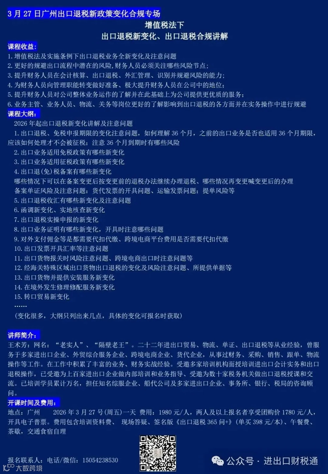 出口退税实务问题解答手册《出口退税365问+》,选取广大出口企业在出口退税实务操作中遇到的及老王在为各进出口财务人员解答问题时经常被问到的实务问题进行解答,受到广大税务系统和出口企业财务人员的好评。本次第20(2026年1月)依照最新政策及金税四期背景,共606个疑难问题解答,总有你在实务操作中遇到但却解决不了或疑惑重重的,那么就请看出口退税实务问题解答宝典《出口退税365问+》,一书在手退税无忧!企业、税局退税的好帮手!最快捷的出口退税学习手段!606个问题目录链接:出口退税365问+(2026年1月第20版)来了!