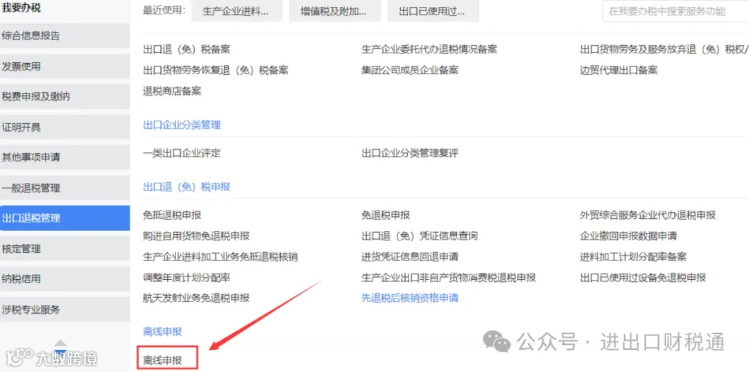 在电子税务局-我要办税-出口退税管理-离线申报中操作