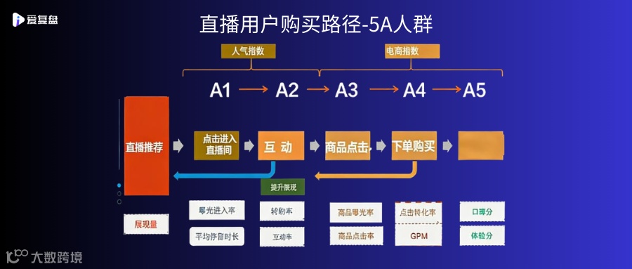 直播用户的购买路径,遵循5A 人群模型: