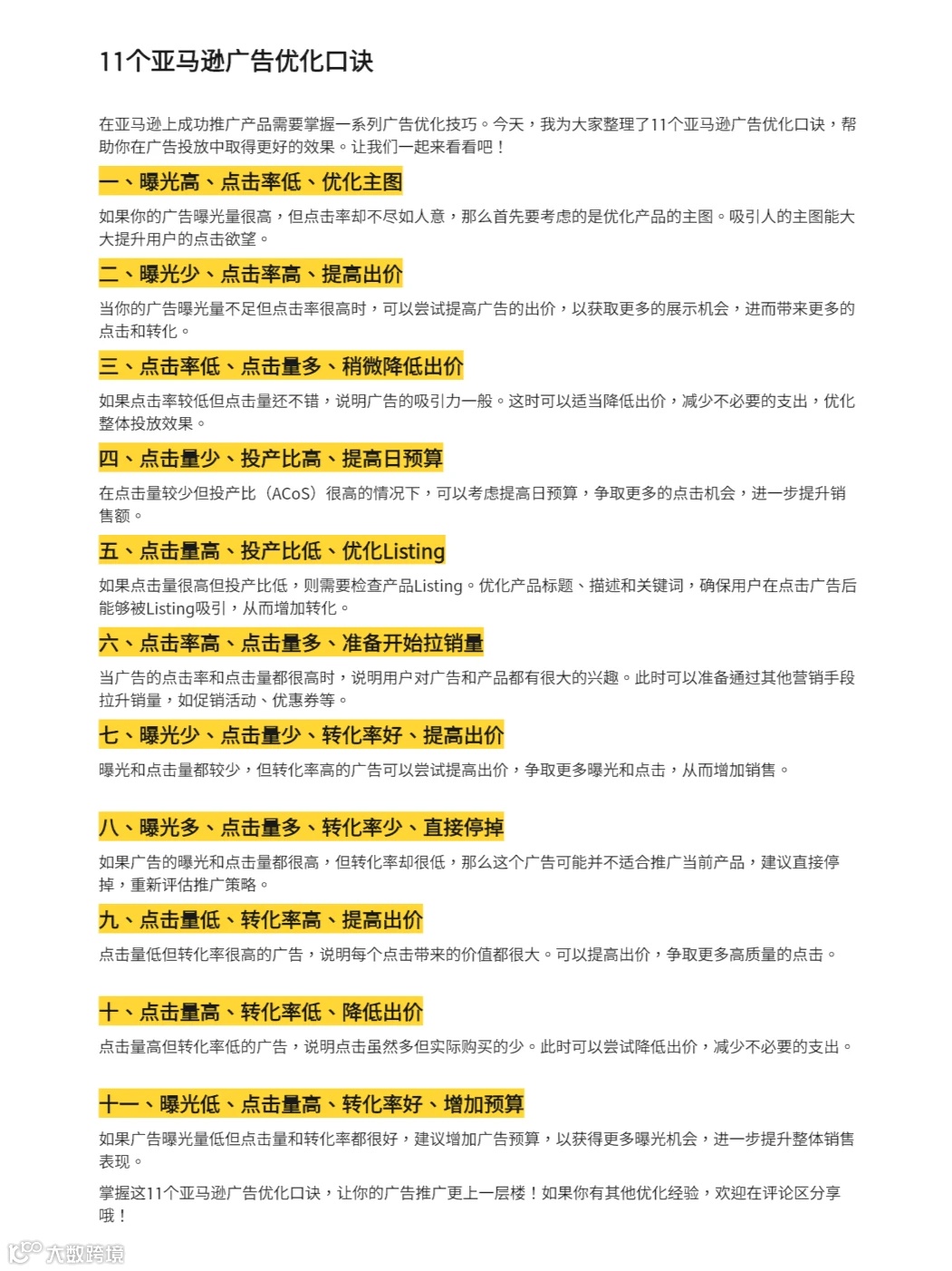 掌握这11个亚马逊广告优化秘诀,让你的广告推广节奏更紧凑!