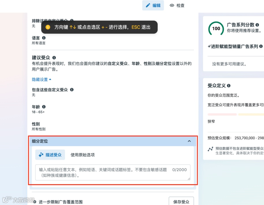 今天收到一些独立站商家朋友吐槽,给我发来一张Facebook广告后台截图,发现细分定位里多了个“描述受众”。