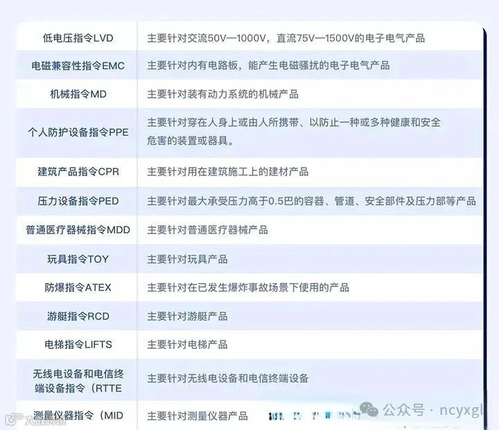 CE认证覆盖范围由欧盟指令(Directives)界定。每项指令对应特定产品类别,并规定其基本安全与合规要求。常见指令包括: - 低电压指令(LVD) - 电磁兼容指令(EMC) - 机械指令(MD) - 个人防护装备指令(PPE) - 无线电设备指令(RED) - 医疗器械指令(MDD/MDR) 企业需根据产品功能、用途及技术特征,识别适用指令并开展相应测试与评估。