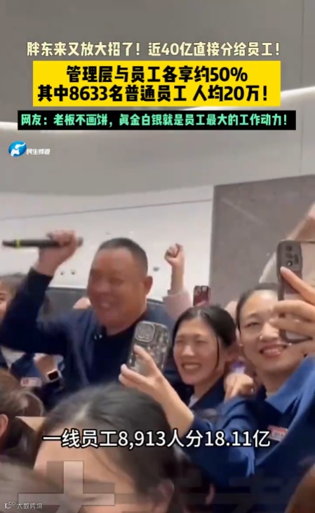 于东来表示,胖东来自2000年起即坚持按岗位向全体员工分配利润,本次方案是理念的深化升级,旨在尊重员工、建立信任、激发创造力,并推动科学美好生活方式的践行。他在评论区强调:“懂得分配,企业才能更健康、长久和幸福。”