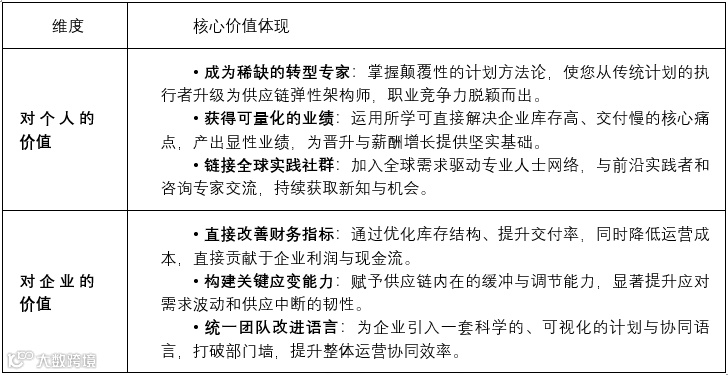 - 若您工作直接关系企业交付可靠性、库存健康度与响应速度,本认证即为您设计;
