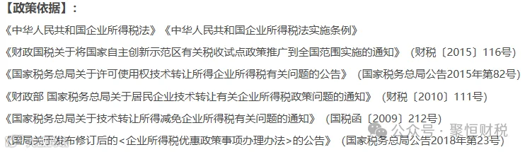【政策依据】国家税务总局关于许可使用权技术转让所得企业所得税有关问题的公告(国家税务总局公告2015年82号)