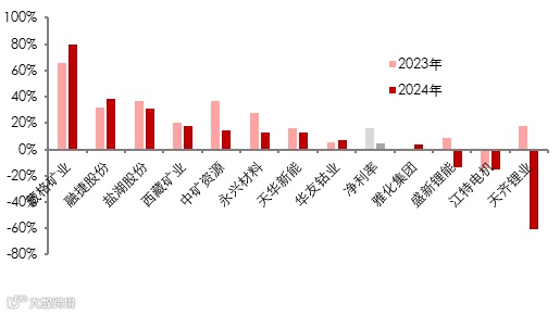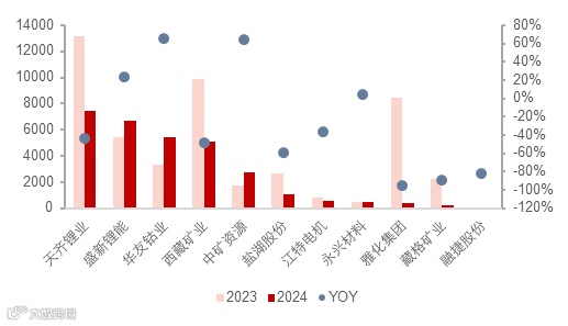 图表16:A股12家锂上市公司归母净利润(亿元)——2023&2024年度