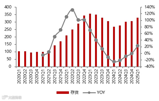 分季度来看,上市公司存货压力逐渐减轻。从上市公司存货价值量来看,24Q1上市公司存货价值量同比下降25%,至24Q4同比变化为+0.4% ,可以发现24年初企业集中消化存货,存货压力逐渐好转。