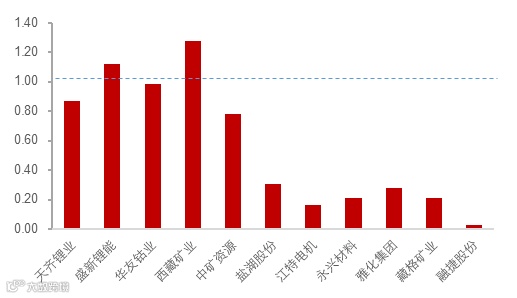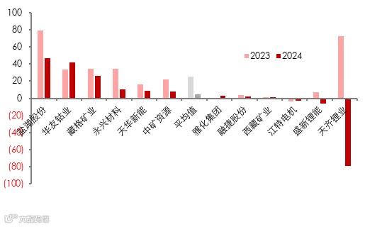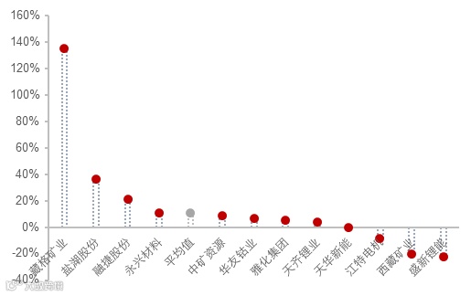 12家样本企业为:天齐锂业、中矿资源、盛新锂能、雅化集团、融捷股份、永兴材料、江特电机、盐湖股份、藏格矿业、西藏矿业、天华新能、华友钴业(以上排名不分先后)。