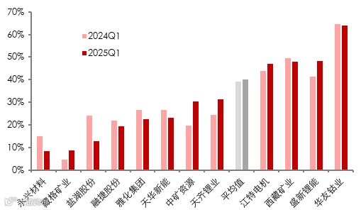 图表22:A股12家锂上市公司毛利率——2025Q1