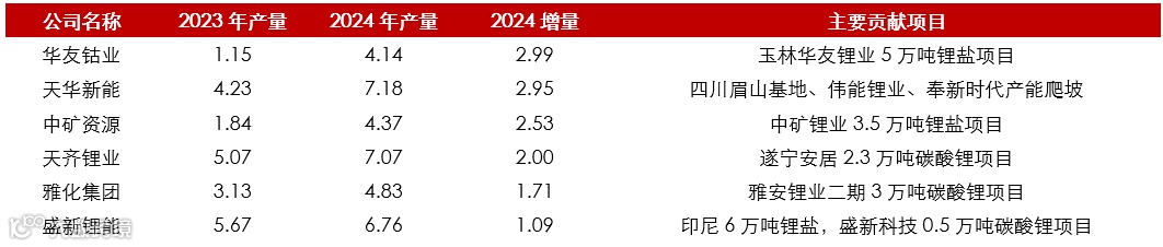 图表2:2024年上市公司锂盐产量高速增长(吨)