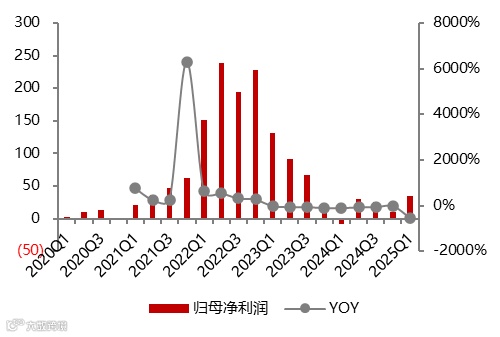 分季度来看,2024年Q4天齐计提16.7亿资产减值带动整体板块归母净利润环比减少14.64亿元至10.71亿元。2025Q1 资产大额计提数目减少,板块归母净利润回升至34.69亿元,与2024年中水平趋平。