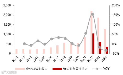 4)营业收入:2024年锂盐营业收入伴随锂价同步下降,同比23年下降40.2%;