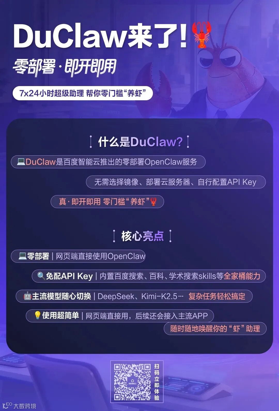 百度智能云发布 DuClaw:零部署「养虾」,即开即用