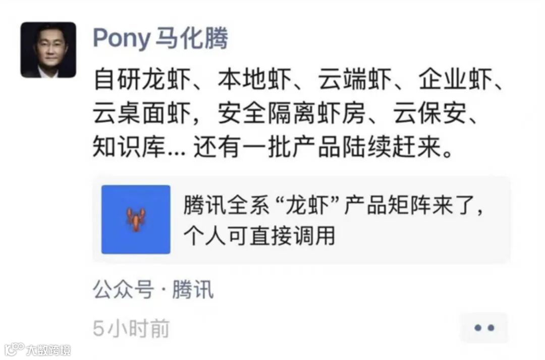 马化腾官宣全系「龙虾」矩阵,「还有一批产品陆续赶来」