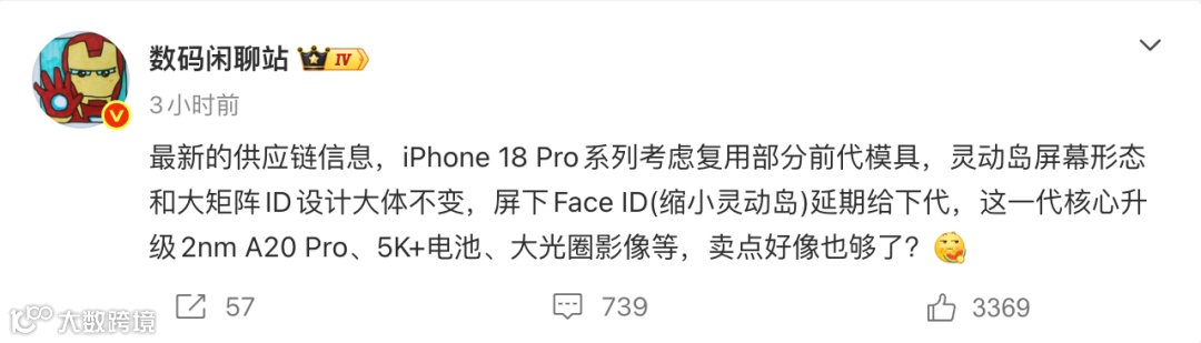 iPhone 18 Pro 或不会搭载缩小版灵动岛