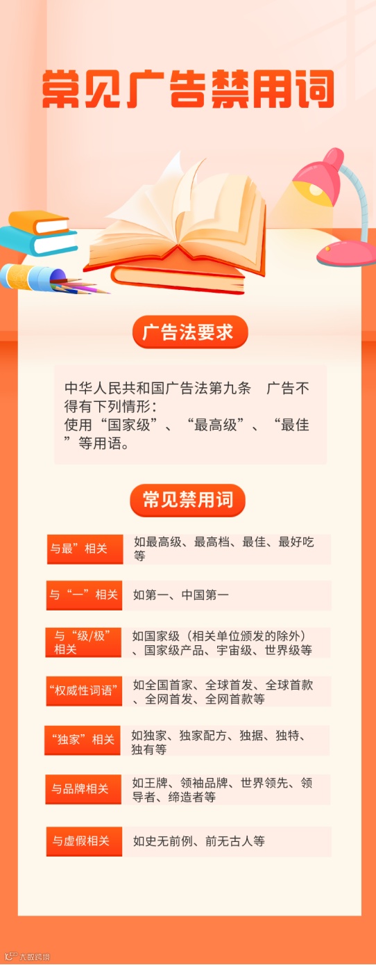 常见的广告禁用词包括“国家级”、“绝无仅有”、“顶级”、“第一品牌”等。这些词语容易对消费者的认知产生误导,必须加以规避。