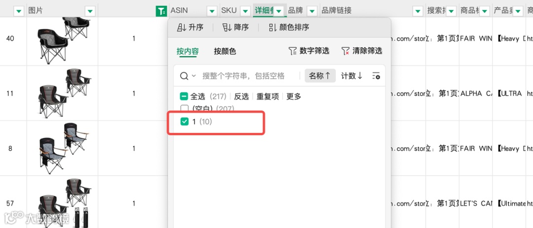 利用卖家精灵插件下载 Camping Chairs 的自然位置产品信息表,记为表 1