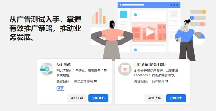 在进行广告投放时,商家一般会同时进行几组广告,可以借助A/B测试变量,比如广告创意、受众或版位,从而来确定哪种策略效果最佳,并以此来对未来的广告系列进行改善。