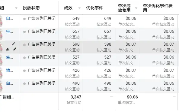 广告系列预算优化测试:将使用和未使用预算优化的两个广告系列一起测试,比较两者成效的不同;