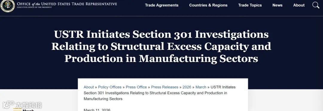 美国贸易代表格里尔于3月11日宣布,将对中国、欧盟、墨西哥、越南、印度、日本等16个贸易伙伴发起新一轮“301调查”。此举被视为在美国联邦最高法院裁定特朗普政府依据《国际紧急经济权力法》(IEEPA)征收的大规模关税违法后,美方重新施加关税压力的重要举措,预计将加剧全球经济不确定性。