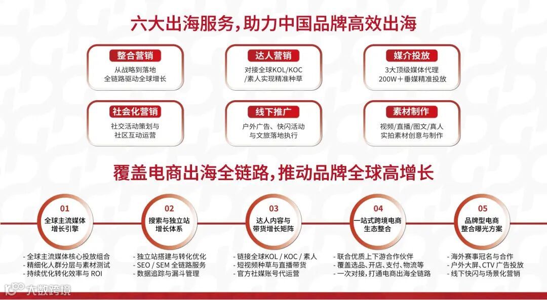 集团完整构建整合营销、媒介投放、达人营销、素材制作、社会化营销及线下推广等一站式出海营销方案,助力中国品牌高效拓展国际市场。