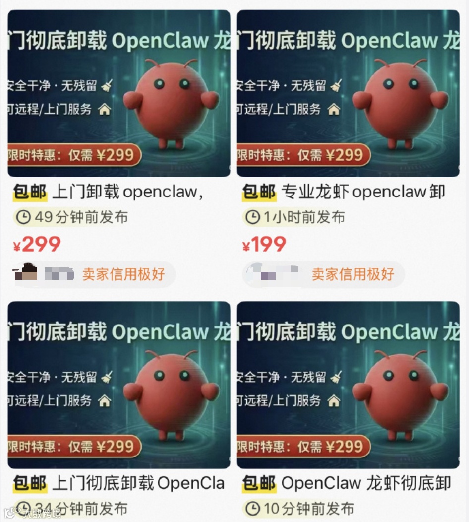 在安全事件频发与成本压力叠加下,“卸载OpenClaw”已成为新的付费服务。3月10日晚,“#第一批养虾人已经开始卸载了#”登上热搜。二手交易市场及社交平台已广泛出现卸载教程与服务。