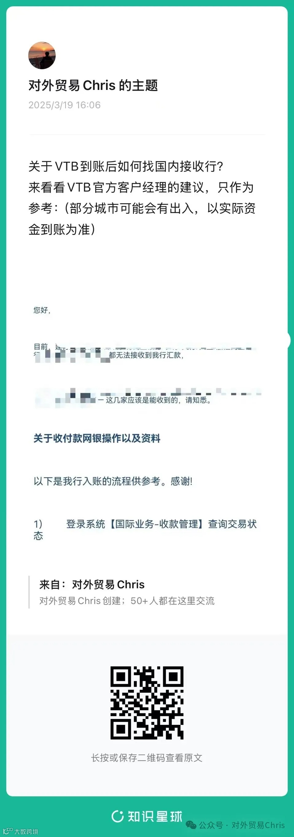 - 沟通细节:收款前与客户确认使用VTB作为收款行,并明确打款币种为跨境人民币(避免卢布汇损);