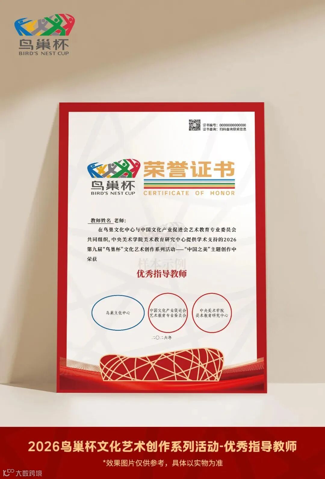 2026第九届“鸟巢杯”文化艺术创作系列活动以“中国之美”为主题,围绕提高学生审美和人文素养为目标,采用“线上+线下”双轨模式。