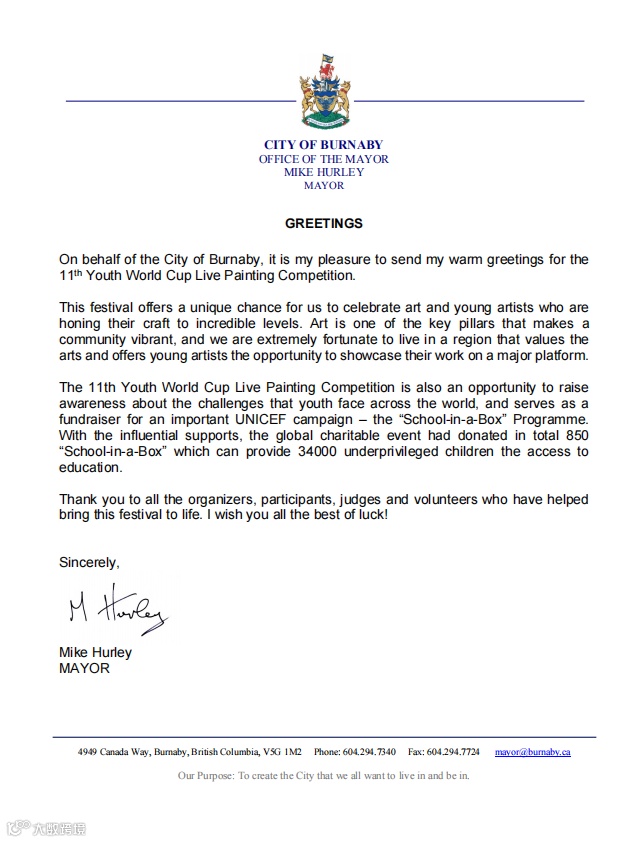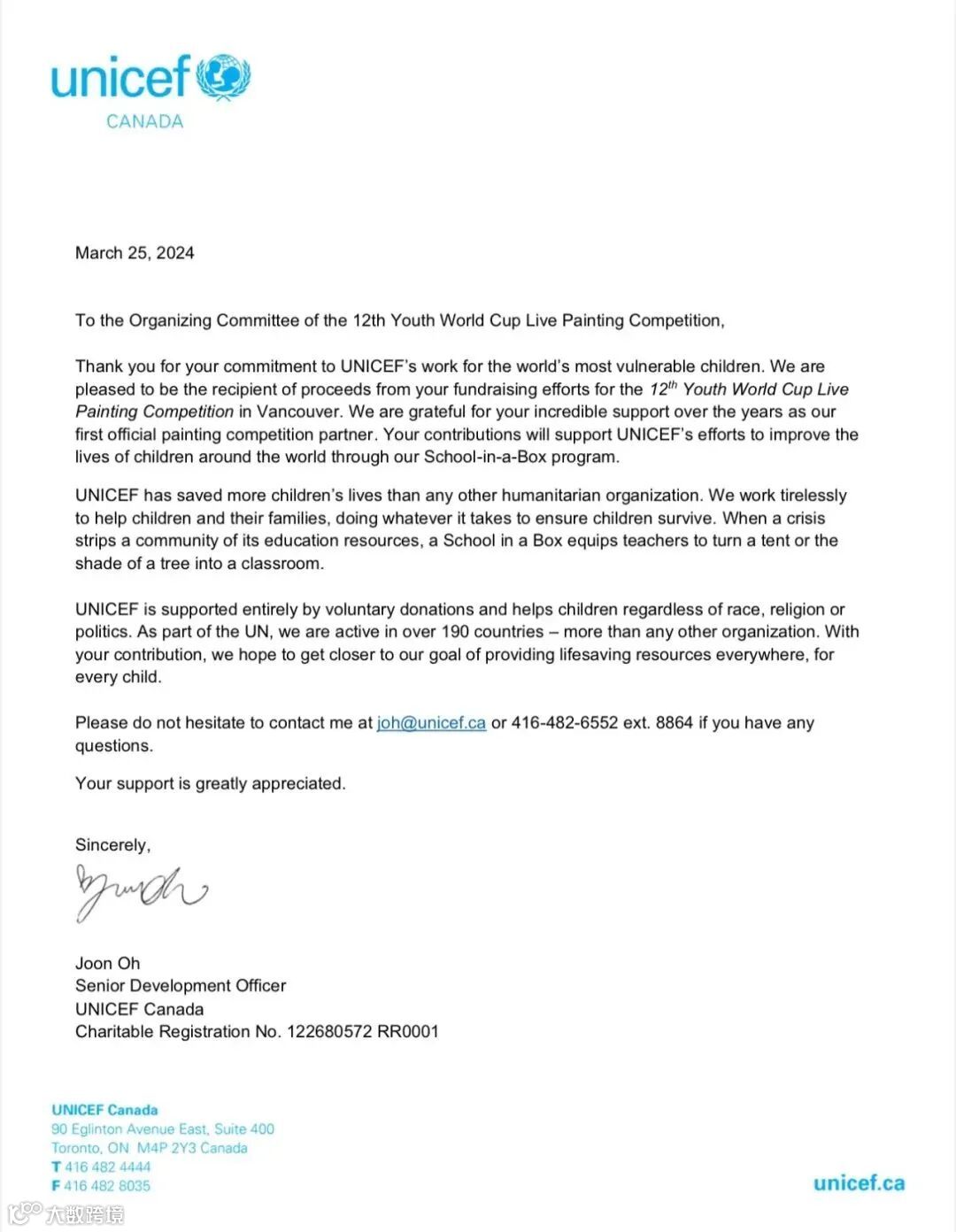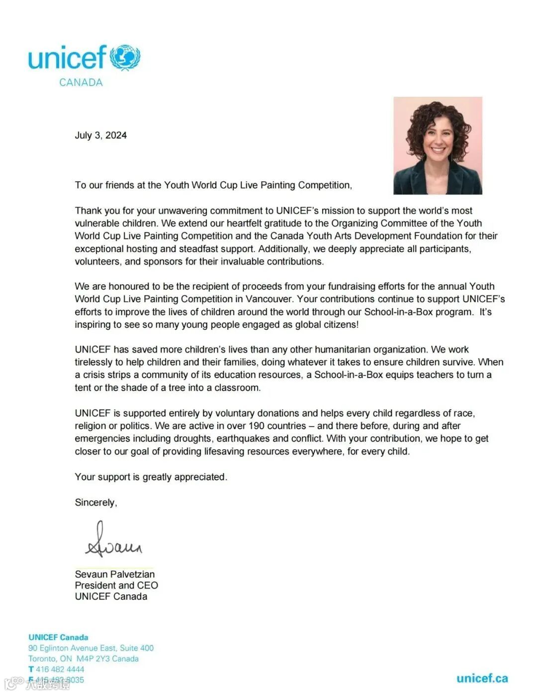 联合国儿童基金会(UNICEF)2024年官方支持函、加拿大总理特鲁多2024年官方支持函等多国政要贺函