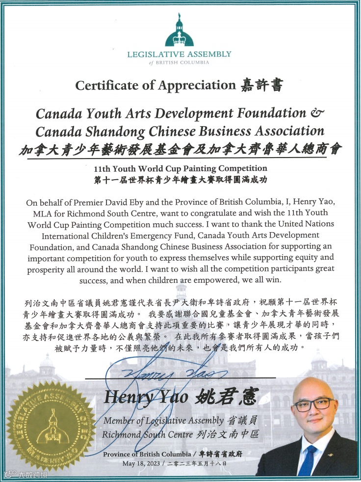 世界杯青少年绘画大赛是联合国儿童基金会唯一官方支持的国际性绘画比赛,有50多个国家和地区的10万余名青少年参赛,是国际青少年大赛的“天花板”和“奥林匹克”。大赛得到了加拿大总督、总理、各国领事馆、艺术家、媒体和社会各界人士的大力支持与帮助。
