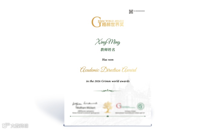 由格林世界奖活动执委会评选出优质美育机构,颁发权威证明。