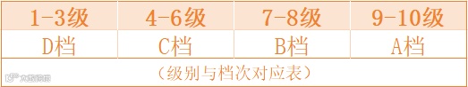 报考级别分为ABCD四档共10级,D档包括1、2、3级;C档包括4、5、6级;B档包括7、8级;A档包括9、10级,10级为最高级(9、10级需逐级报考)。