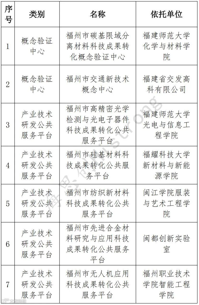 2026年度福州市概念验证中心与产业技术研发公共服务平台认定名单