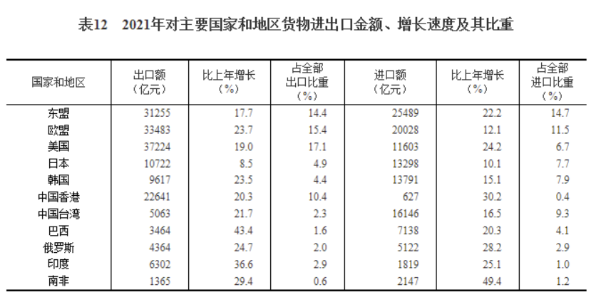 疫情当下,我国进出口总额在2020年稍有回落,2021年又实现了新的增长。看来,依旧有广阔海外市场等待我们开发。那么,2021年我们究竟在哪片市场“最”赚钱?出口量最多呢?