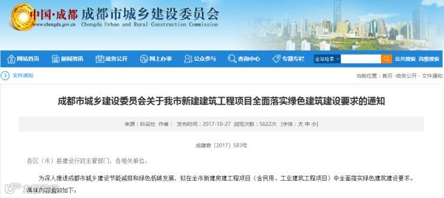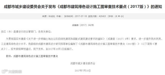 提要:该文件明确成都市项目2017绿色建筑执行范围,并首次提出将绿色建筑建设要求纳入《(招拍挂)建设条件通知书》