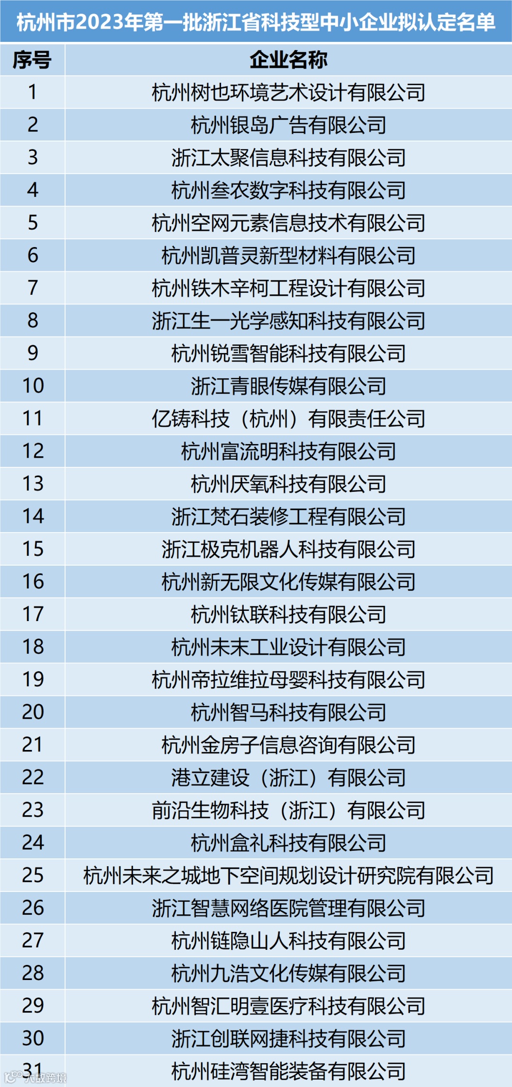 浙江省科技型中小企业拟认定名单