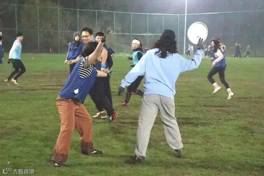 飞盘运动是一项集趣味、娱乐、竞技于一体的新兴时尚运动。比赛过程中,参赛选手随机分为四组,通过飞盘九宫格、小组挑战等方式进行比拼,一时间,四种不同颜色的身影活跃在公园的每个角落,大家或跑或跳,尽情追逐着黑夜里的白色弧线。