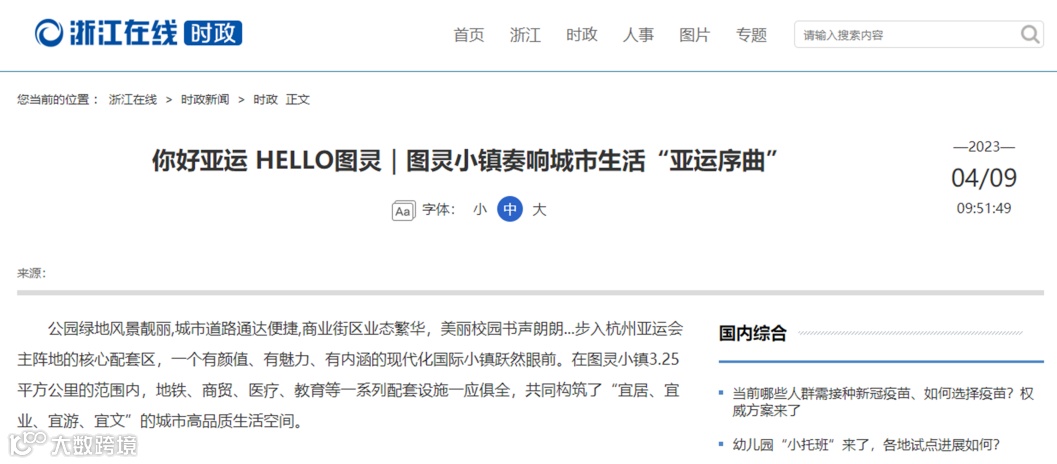 4月6日,《中国网》报道了题为《你好亚运 HELLO图灵|图灵小镇奏响城市生活“亚运序曲”》的新闻,凸显了图灵小镇作为杭州亚运会主阵地的核心配套区,以多维度护航亚运盛会,展现杭州未来城市新封面的责任担当。