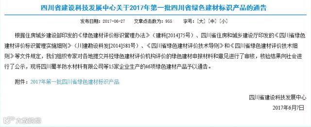 详情链接:四川省第二批绿色建材标识产品进入公示!