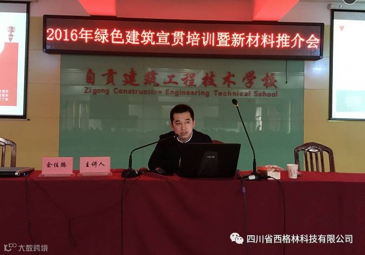 2016年12月20日,自贡市绿色建筑宣贯培训在盐都自贡建筑工程技术学校召开,本次会议由自贡市城乡规划建设和住房保障局主办,自贡建筑工程技术学校协办,自贡市城乡规划建设和住房保障局廖局长出席活动。本次会议全市勘察、设计、图审、建设、施工、监理单位负责人及经办人员三百余人参加培训,我司绿色建筑中心项目经理余佳腾受邀参加并做精彩讲解。