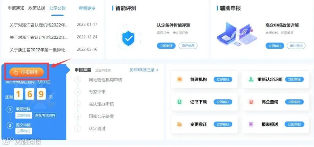 6.选择【申报指引】,可查看申报流程。
