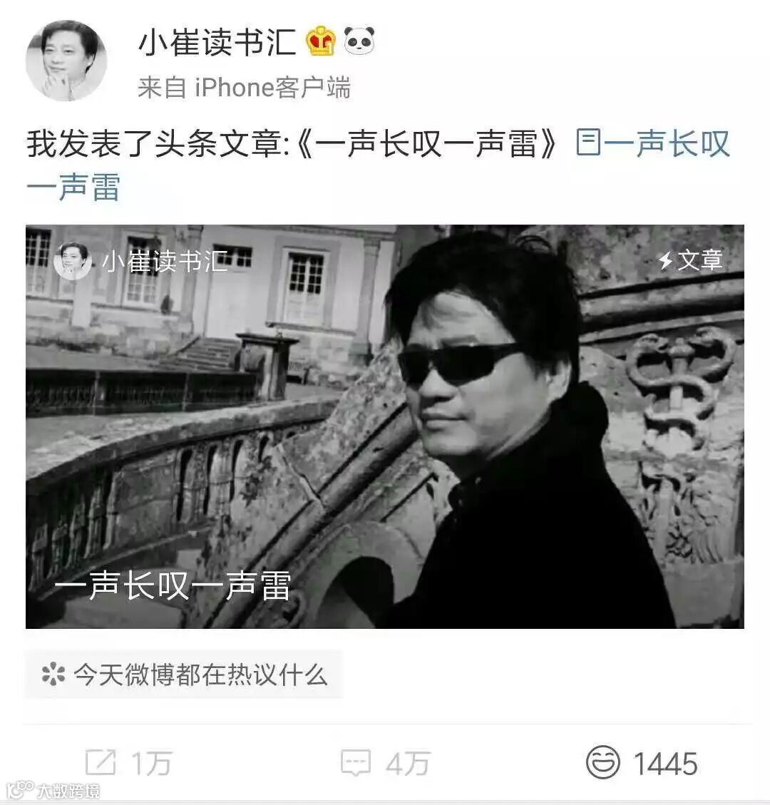 崔永元又发文章了,可惜,微博转发被限制,直播也不行。