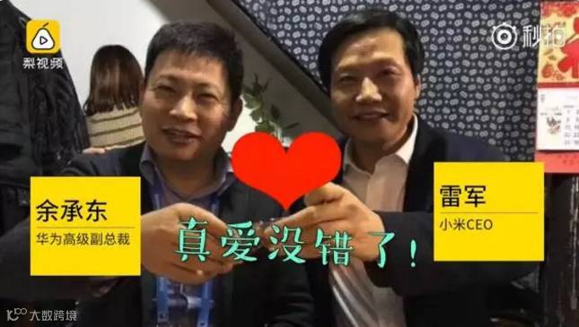 席上,手机界大佬 华为余承东和小米雷军首度碰杯,只是少了苹果CEO库克。