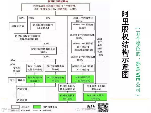 -在中国运营不同网站的许可证和牌照,都是由可变利益实体(VIE)持有,而后者又是由中国公民控制,并非由上市主体阿里巴巴公司控制。