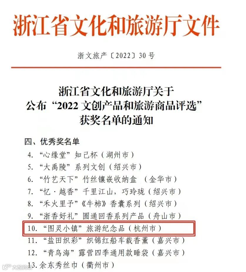 近日,由浙江省文化和旅游厅主办的“2022文创产品和旅游商品评选”活动圆满落幕。本次活动征集了全省数百件文化创意、科技创意、时尚创意、传统工艺等文创产品及旅游商品。其中,图灵小镇报送的吉祥物手办、文化衫、冰箱贴、钥匙扣等旅游纪念品荣获优秀奖。
