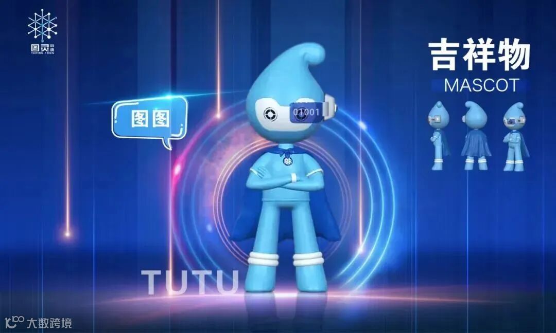 图图(TuTu):“图图”以虚拟“智”人为整体造型,头部水滴浸润萧山潮文化;身披大数据披风,掀起数智浪潮;胸前激光雕刻芯片图腾,赋予智慧灵魂。