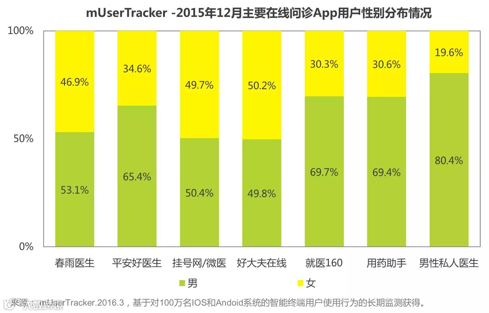 艾瑞分析认为,春雨医生等医疗服务类App主要以35岁人群为主,这主要是因为35岁以下年轻人触网较早,对于互联网医疗的使用习惯较易养成。