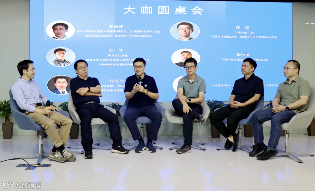 茶歇过后,活动进入圆桌讨论环节。由浙江大学计算机创新技术研究院研究员、大模型研究中心主任罗尚虎主持,久痕科技CEO汪源、每日互动总裁刘宇、网易数智副总裁朱浩齐、杭州码全信息科技创始人马汉杰、沐曦集成电路副总裁吕军五位嘉宾,围绕AI时代软件产业的未来展开深度对话。