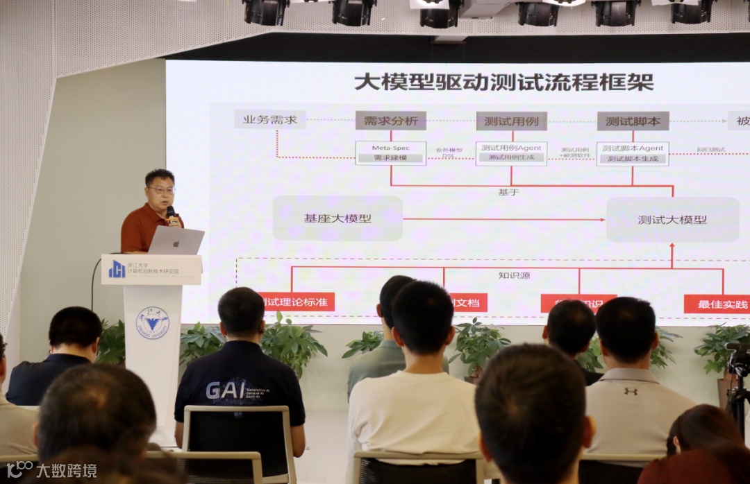 浙江大学计算机创新技术研究院研究员、杭州龙测科技CEO师江帆以《基于领域大模型的软件测试智能体》为主题,他提出,通过多模态理解与UI交互建模,AI可自动生成测试脚本、执行回归测试,并实时定位界面元素,大幅提升测试覆盖率与效率,助力企业实现“一分钟用例生成、一键测试执行”。